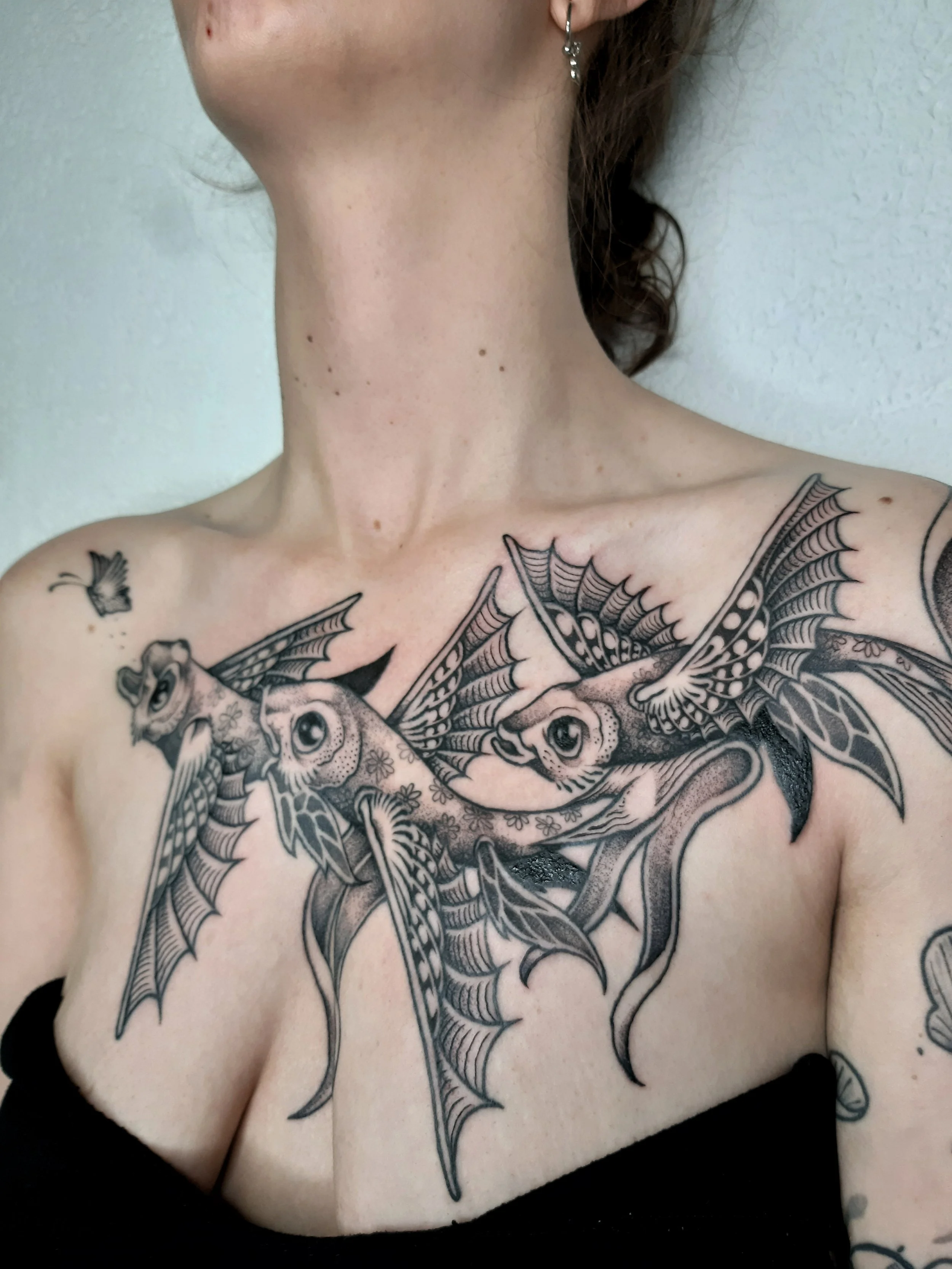 Today, my love for spontaneity has led me to create my tattoos by drawing the design directly on the skin with a pen. This technique is called free-handing.